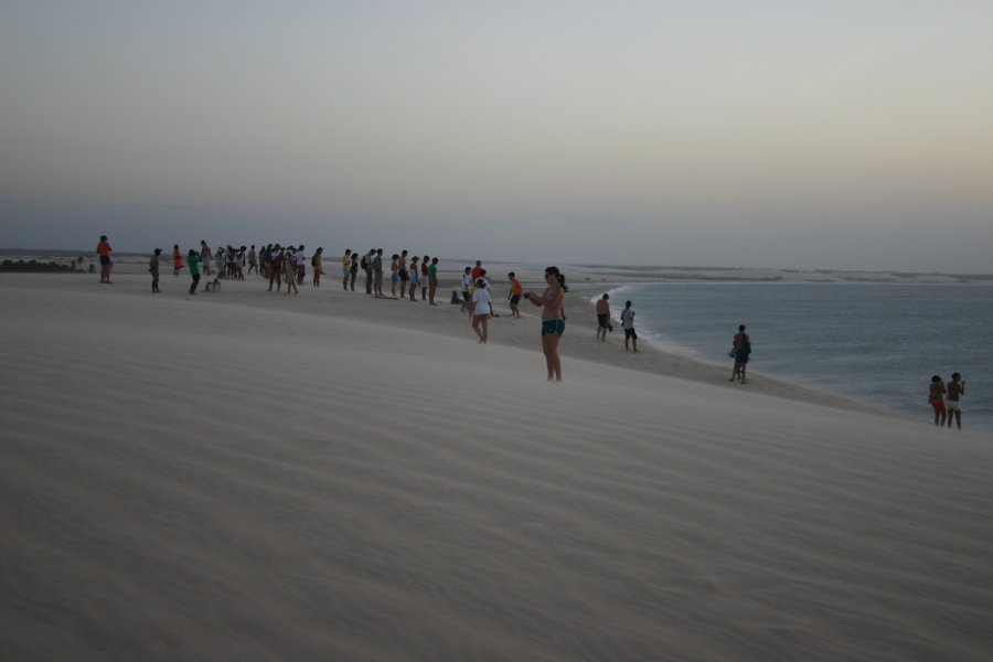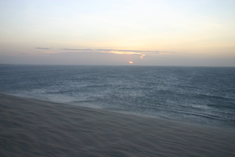 Pilgrimage up the sunset dune.